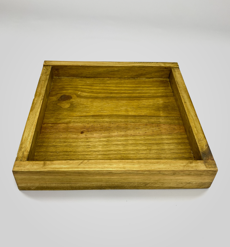Producto hecho en nuestro país por artesanos. Bandeja cuadrada de madera rústica. Inspirate con velas, y flores.