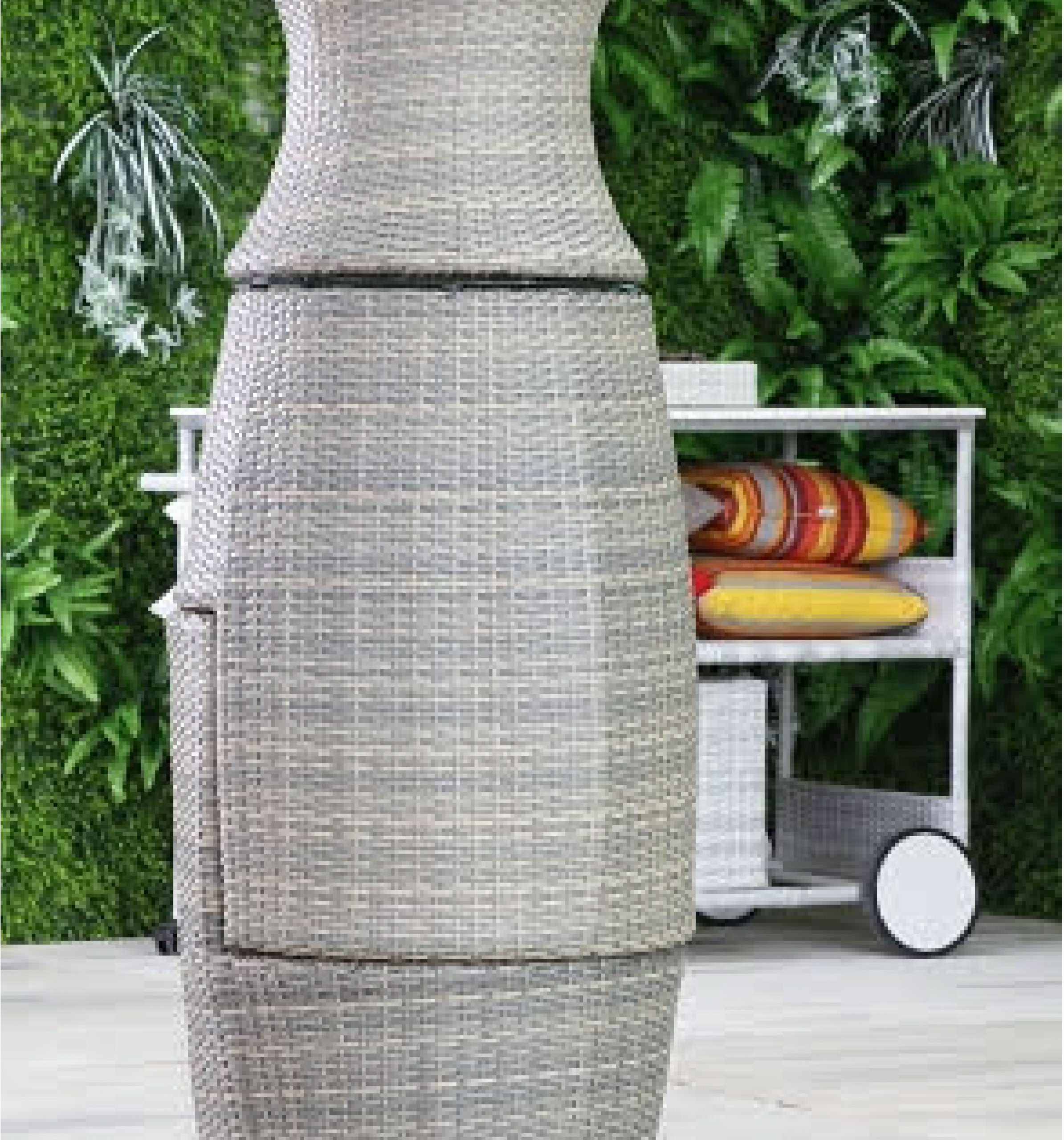 – Juego de living Rattan marrón con almohadones blancos