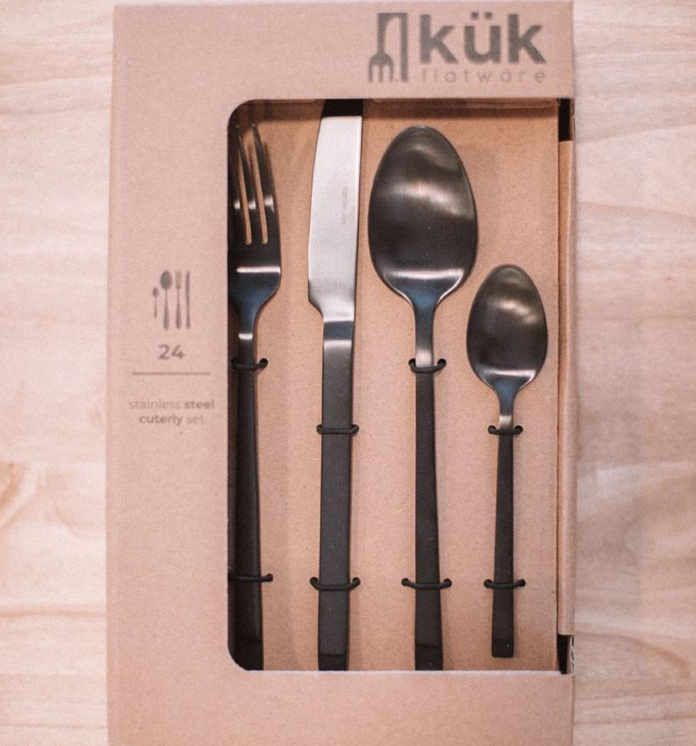 El set es para 6 comensales, incluye 6 tenedores, 6 cuchillos, 6 cucharas soperas, 6 cucharas de postre. Apto para lavavajillas, no utilizar limpiadores abrasivos.