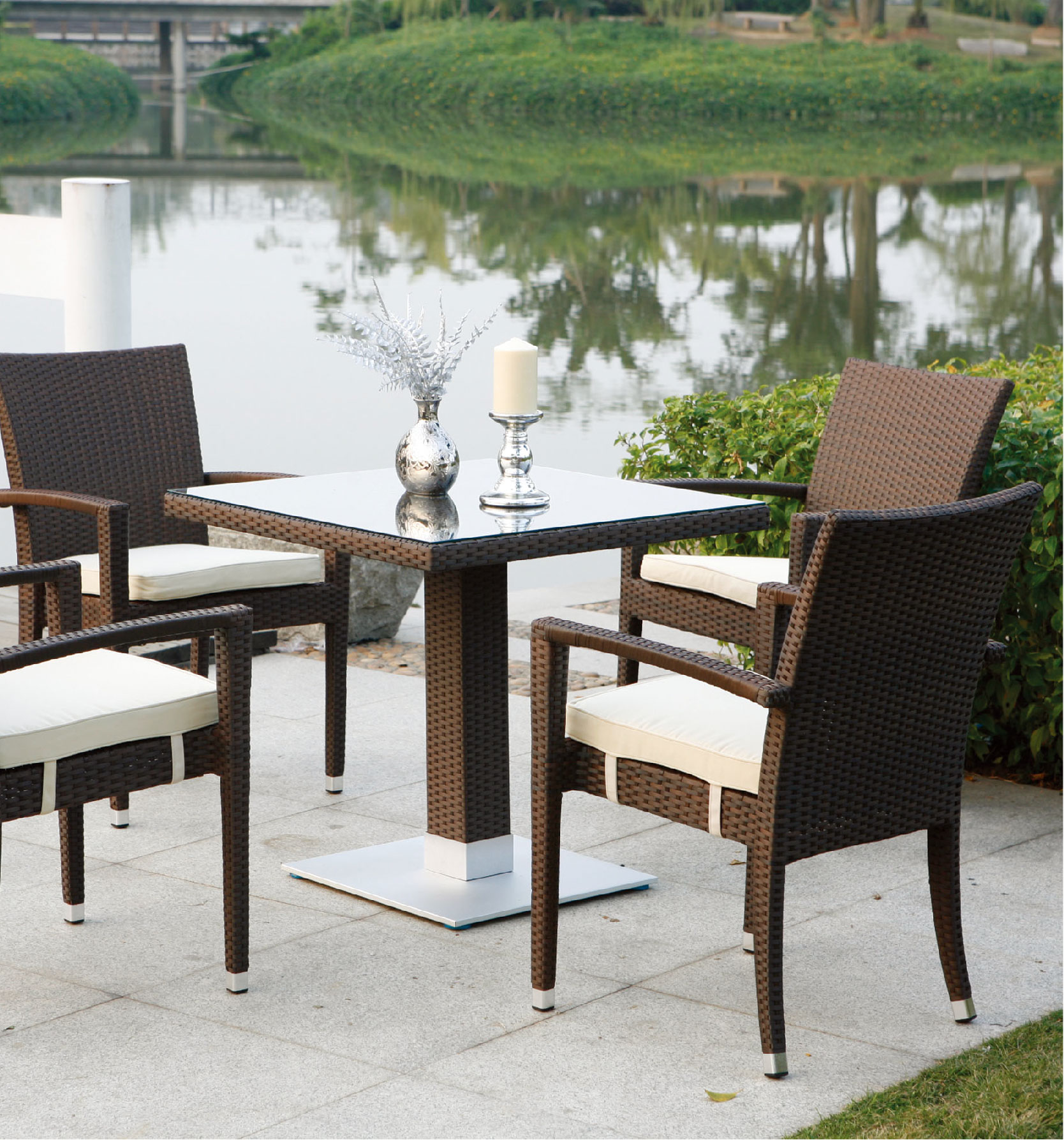 MEDIDAS: Silla: Ancho: 60 cm x D61 cm x H90 cm – Mesa: 80 cm x 80 cm x H74 cm