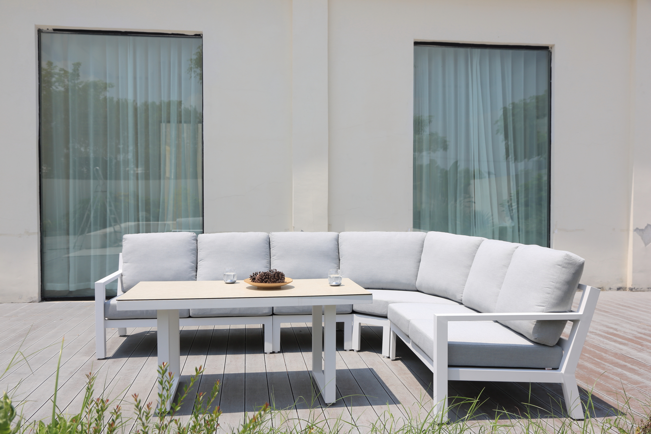 Esquinero Dubbo Blanco con Almohadones Gris Clarito.