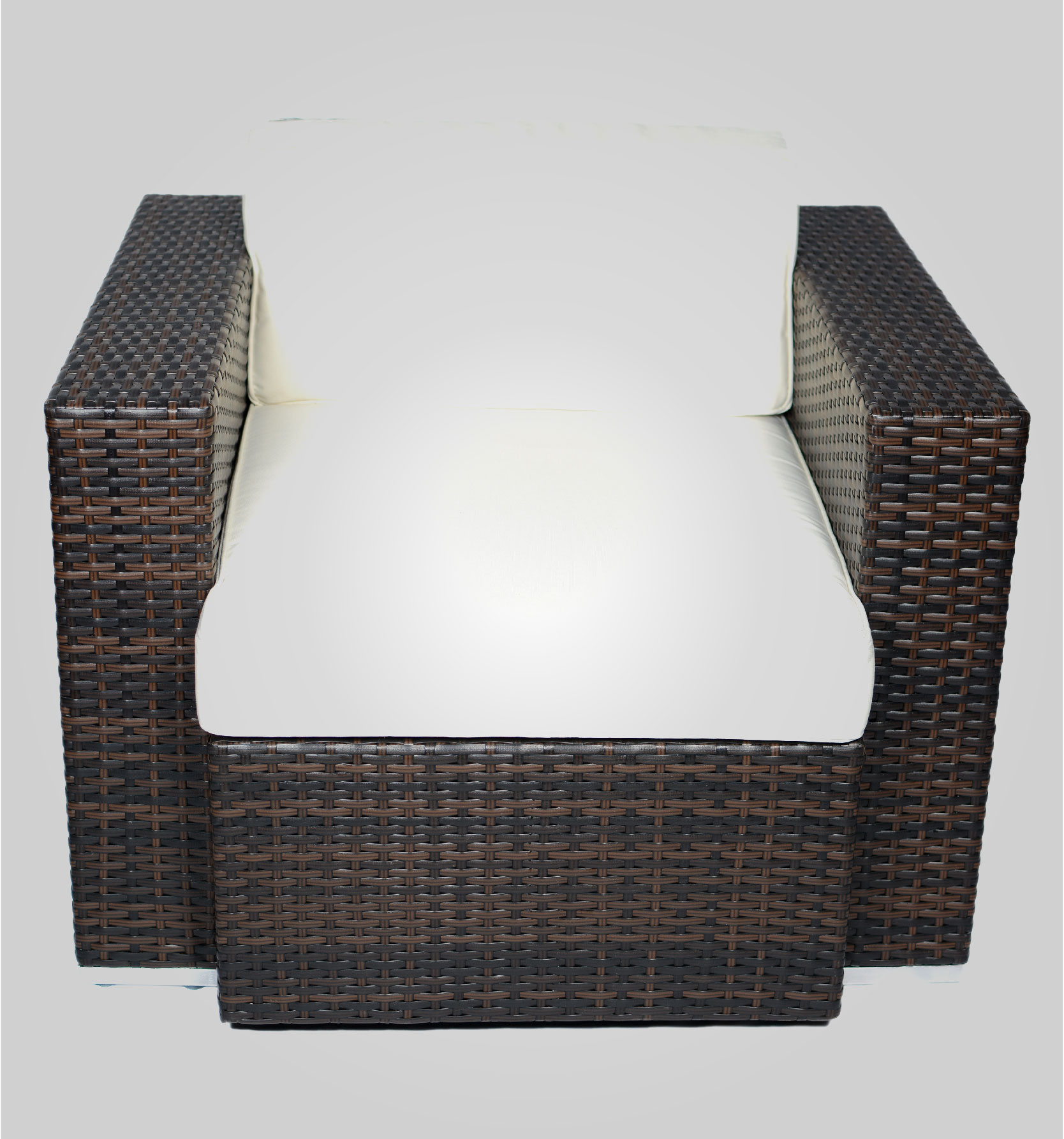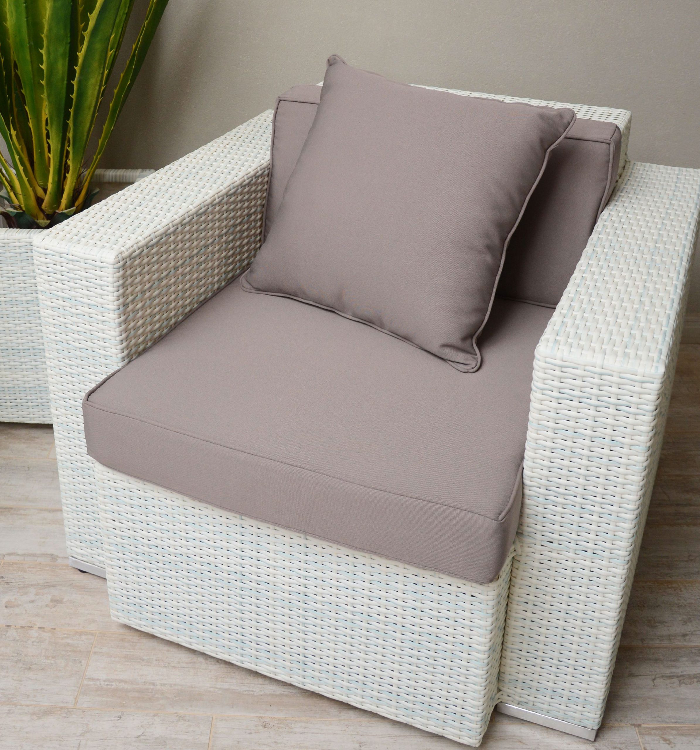 – Sillón individual Rattan Diana blanco con almohadón gris o gris con almohadones grises