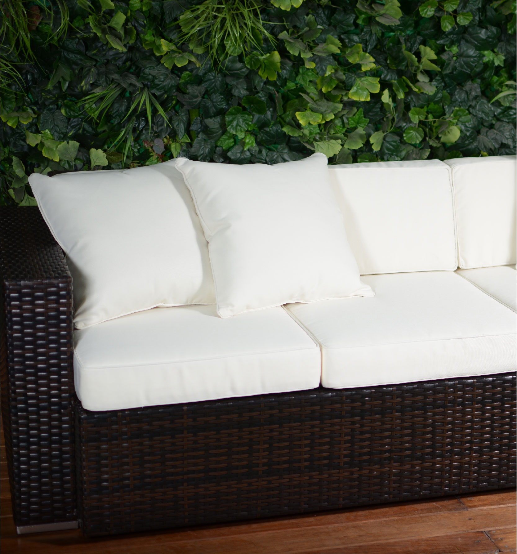 – Sillón triple Rattan Diana marrón con almohadones blancos o gris con almohadones grises