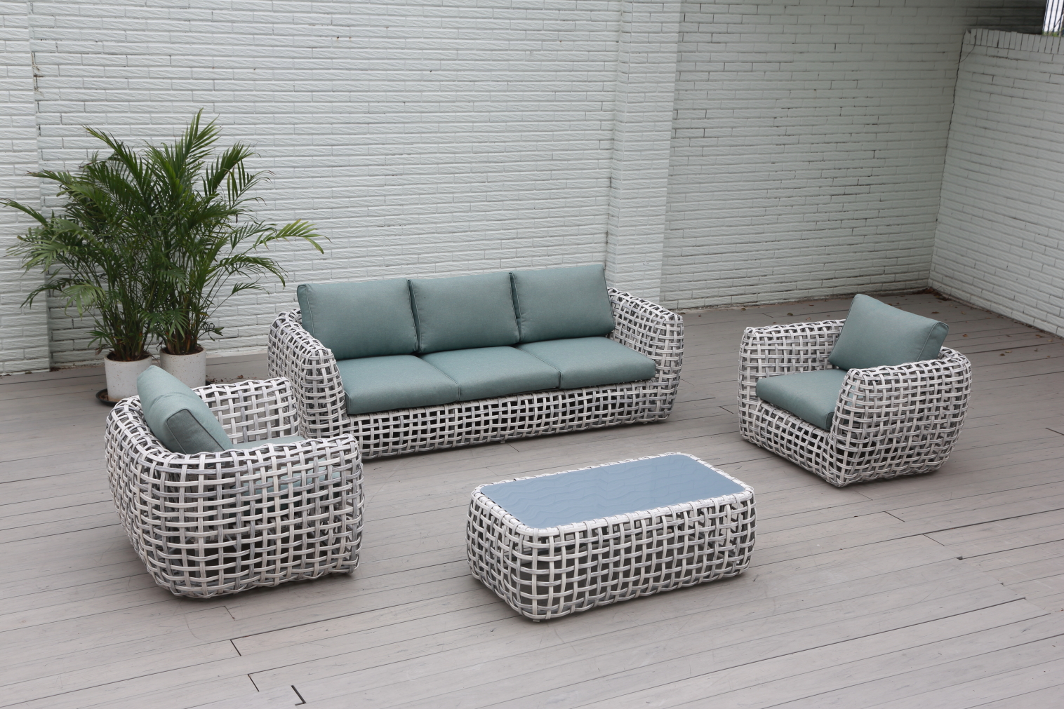 - -Color: Rattan mix Gris con Blanco, Almohadón Verde Agua.